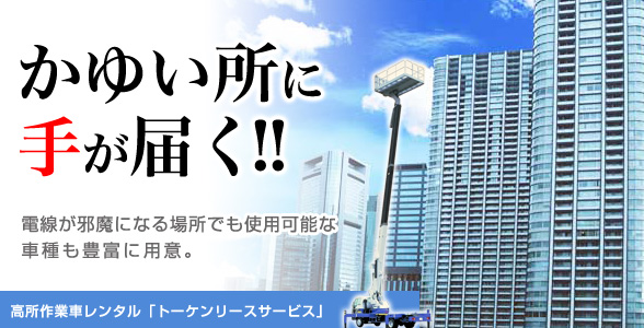 高所作業車のレンタルならトーケンリースサービス。建柱車・ユニック車も取扱い。毎日早朝から電話受付中。詳しくは営業時間を参照して下さい。